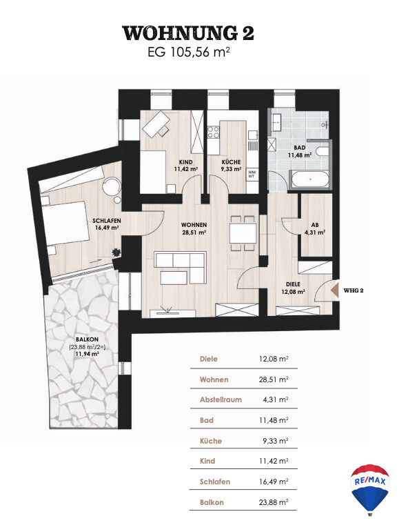 - Bad mit Fenster, Dusche und Wanne- Balkon vorhanden