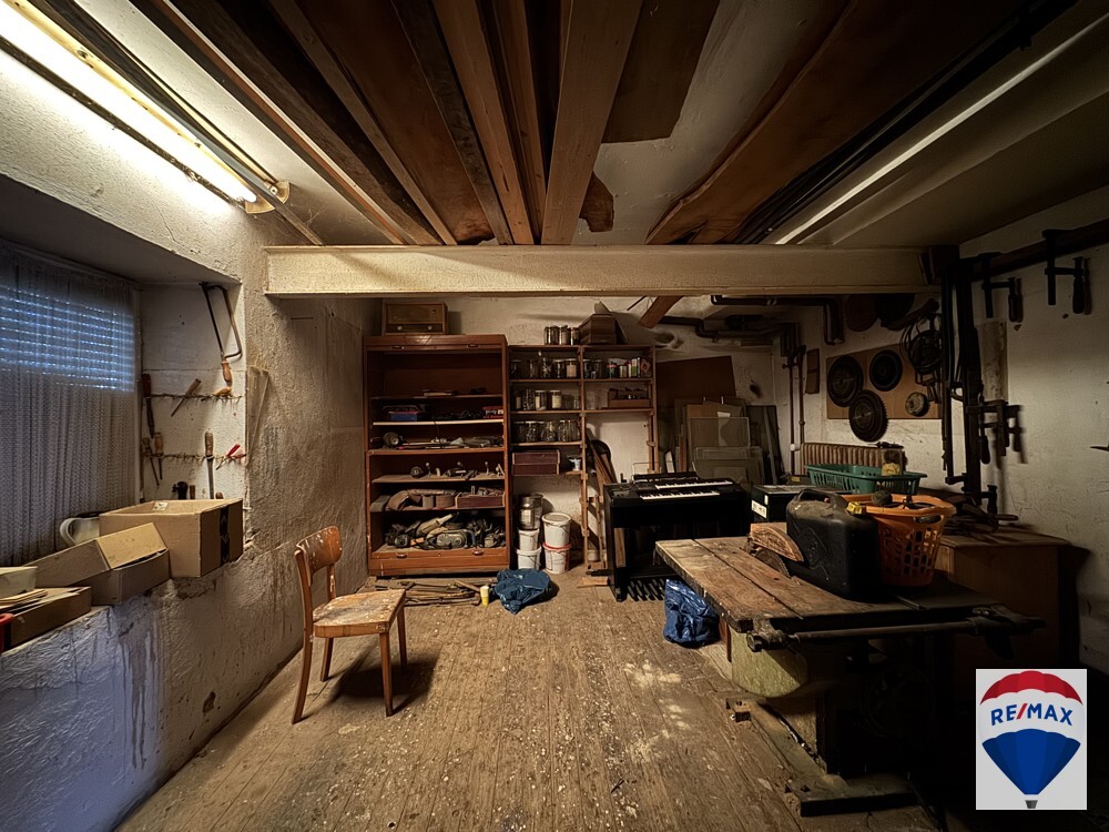 Eine großzügige Werkstatt erlaubt Ihnen, Ihre beruflichen Ziele zu verwirklichen oder als engagierter Hobbyhandwerker Ihre Freizeit zu verbringen. Zudem ist eine weitere Werkstatt im EG vorhanden. Der Keller ist dem Baujahr entsprechend als Gewölbekeller erbaut.
