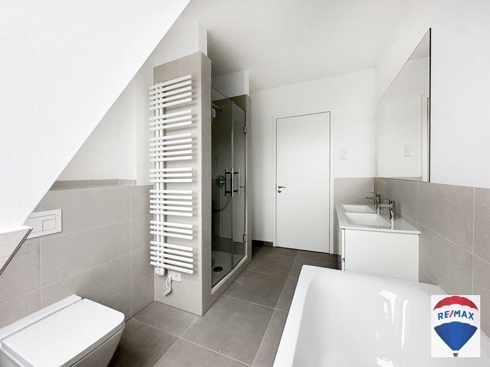 7, Bäder raumhoch gefliest im Duschbereich, Waschtisch- Höhe Vorsatzwand.